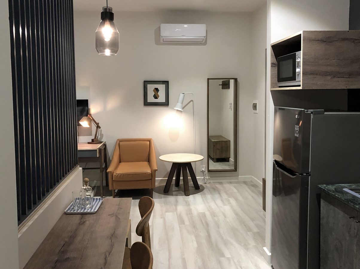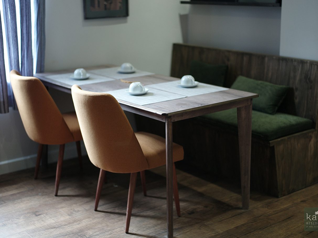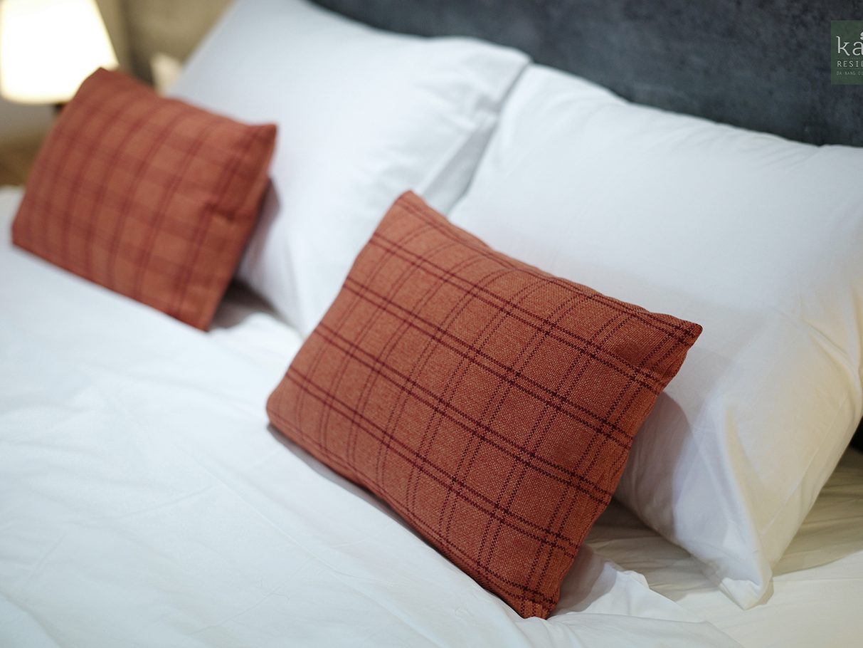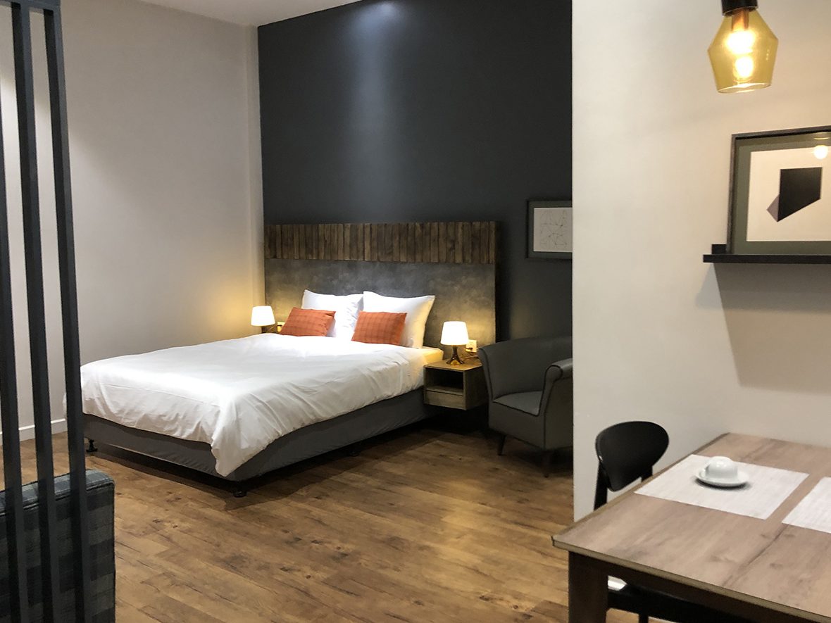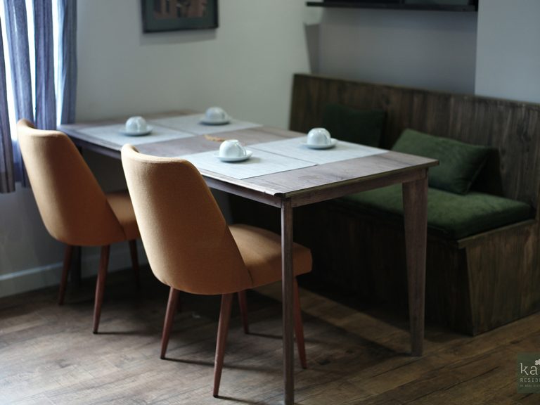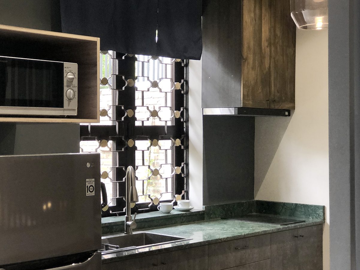 Each room featured by a private balcony, overlooking the green garden view, a well-equipped kitchen, and a custom writing desk pairing with a wide variety of armchairs and sofas, provides a relaxing yet cozy & homelike-feeling living space.