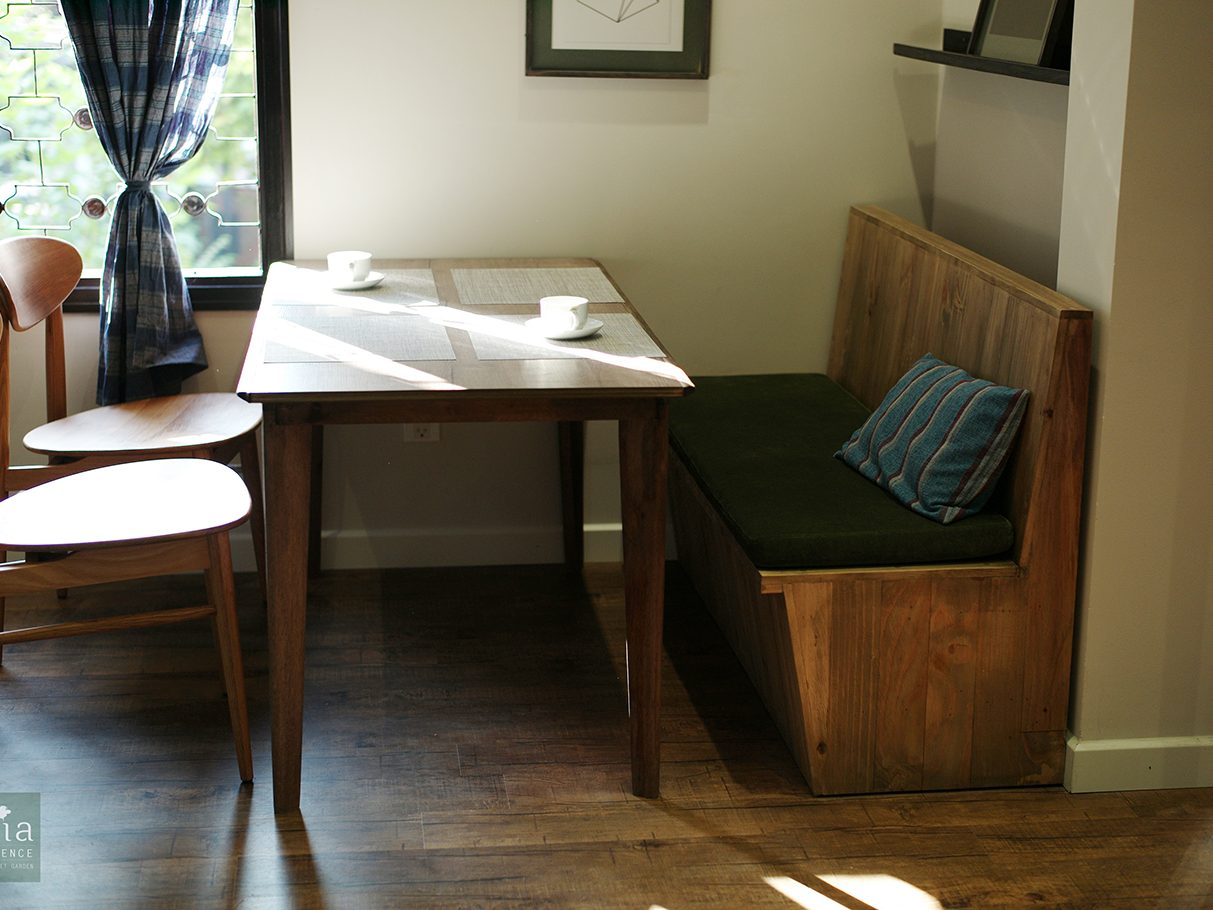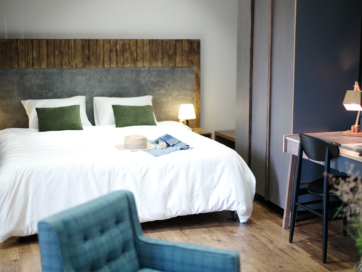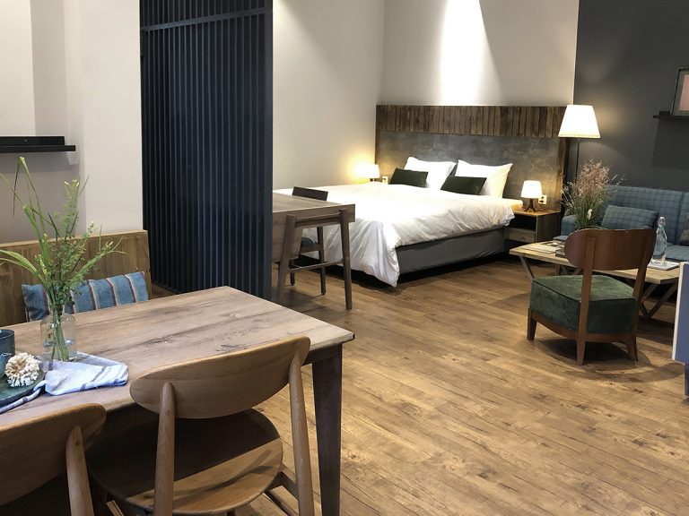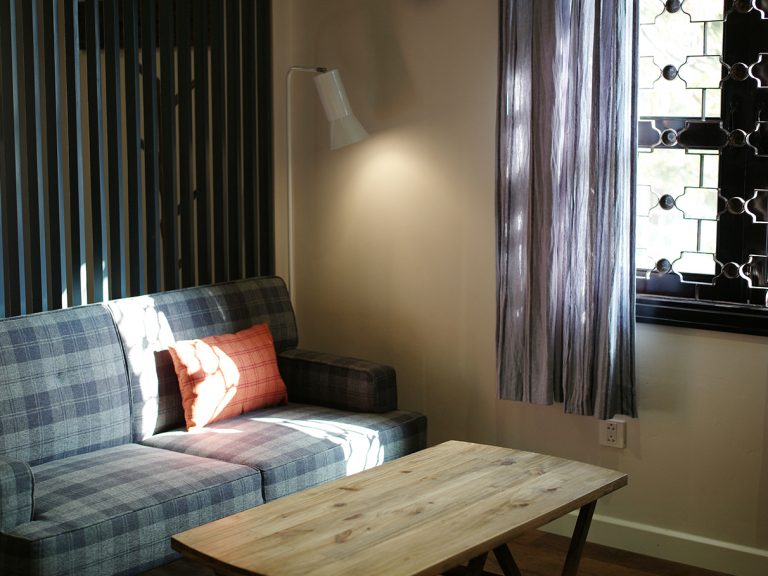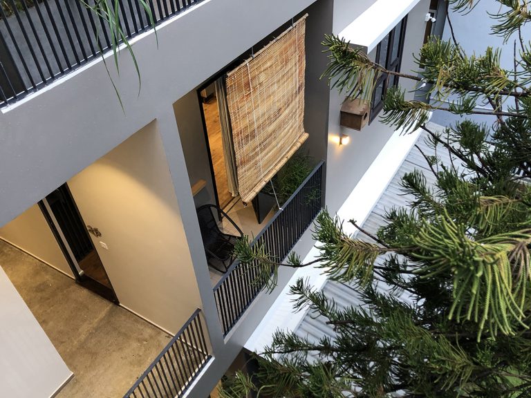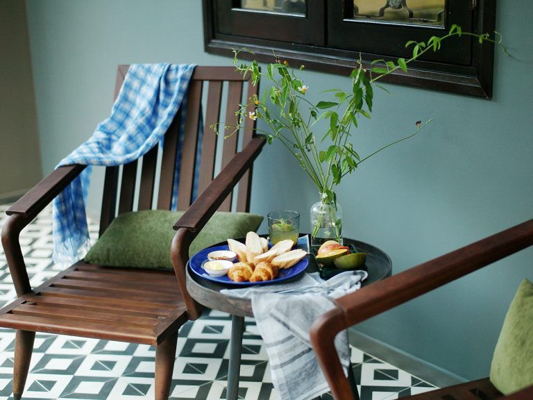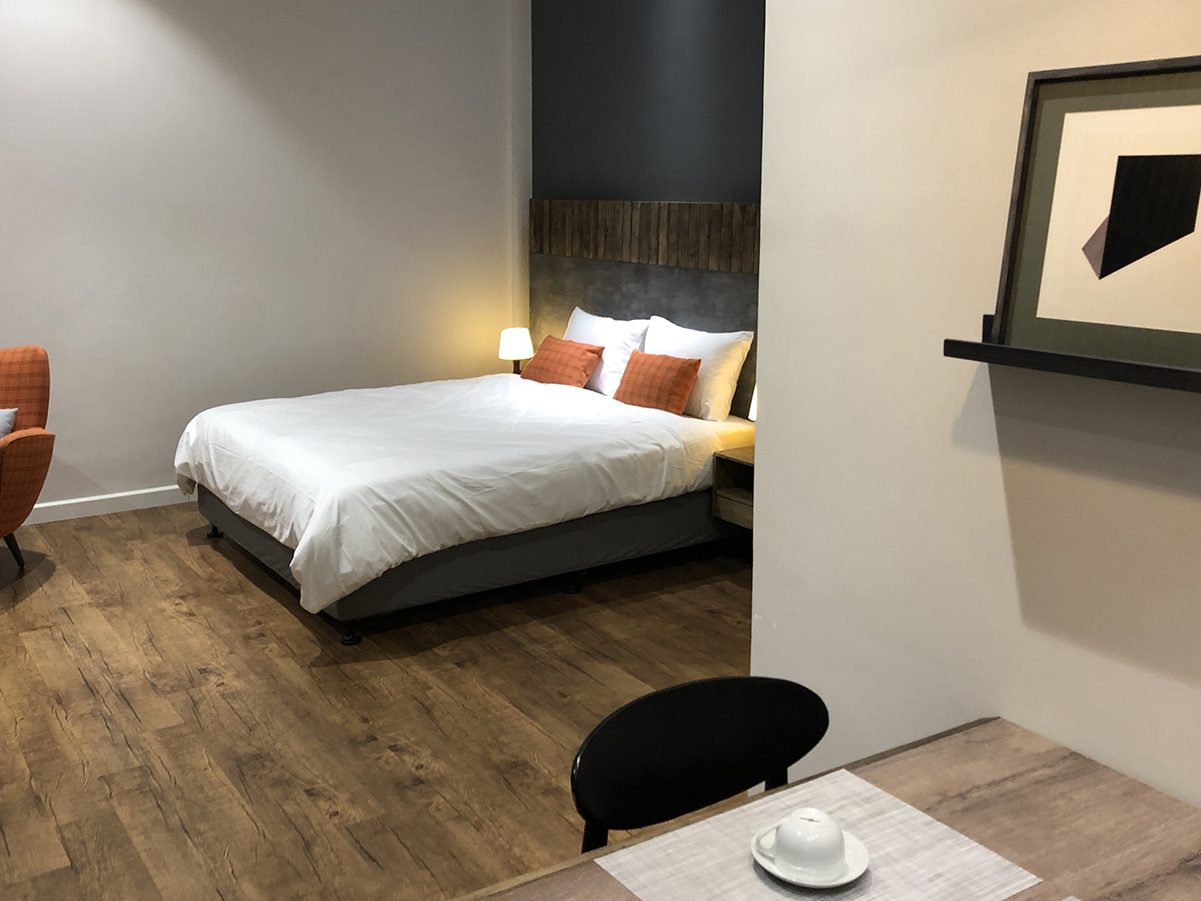 Each room featured by a private balcony, overlooking the green garden view, a well-equipped kitchen, and a custom writing desk pairing with a wide variety of armchairs and sofas, provides a relaxing yet cozy & homelike-feeling living space.